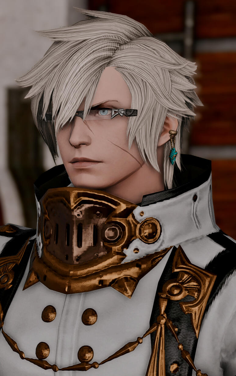 Finally lets himself wear glasses (didn't want to before because he resembles his Garlean father)