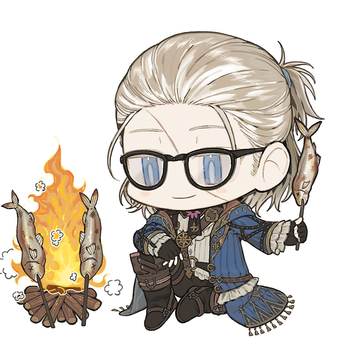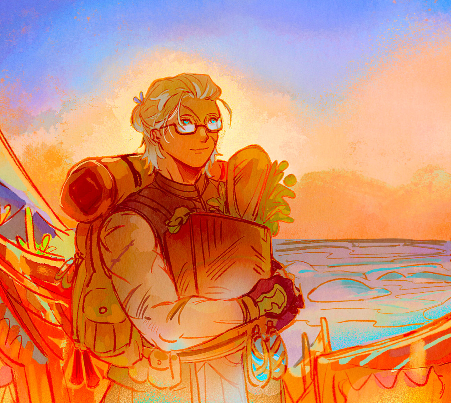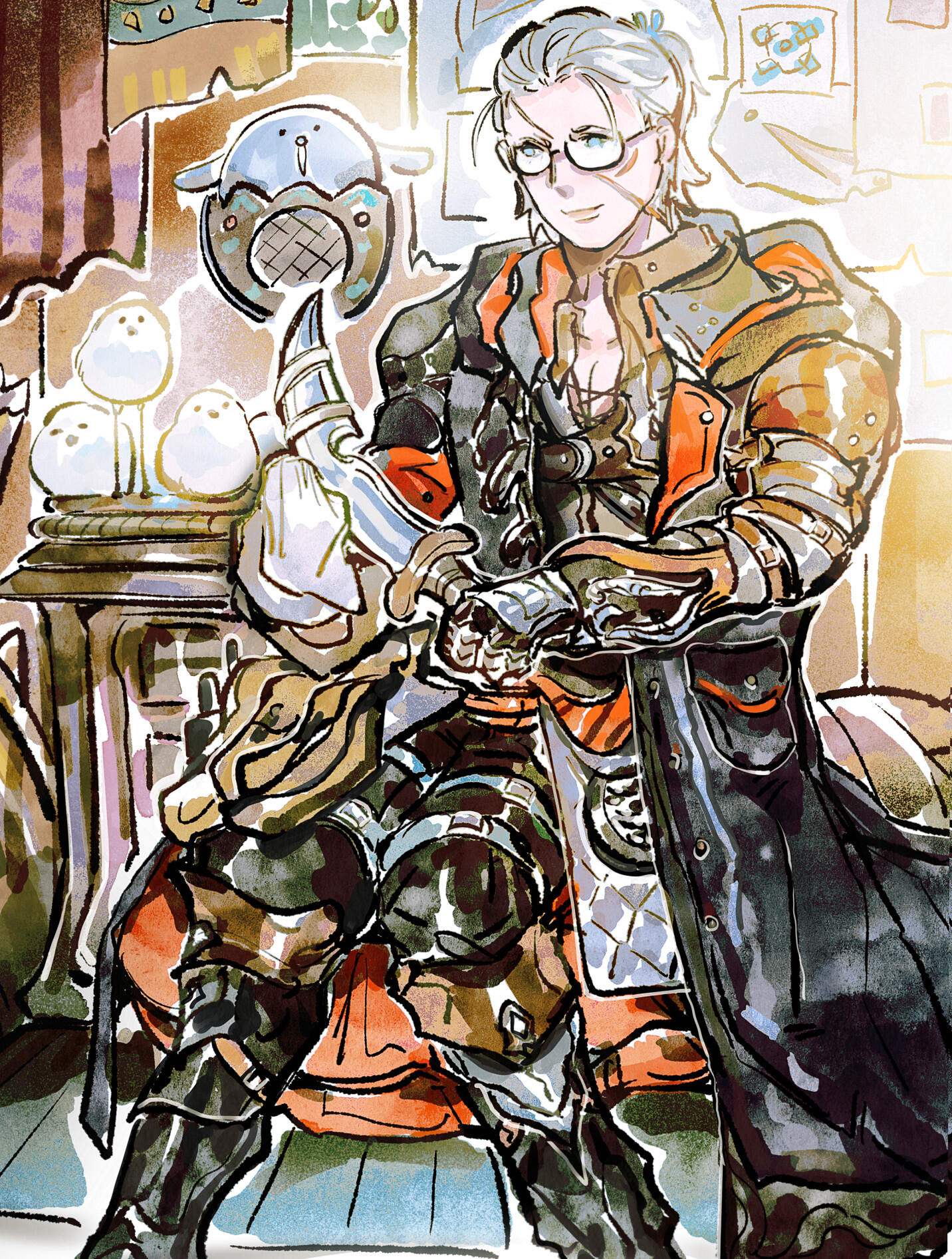 Finally lets himself wear glasses (didn't want to before because he resembles his Garlean father)