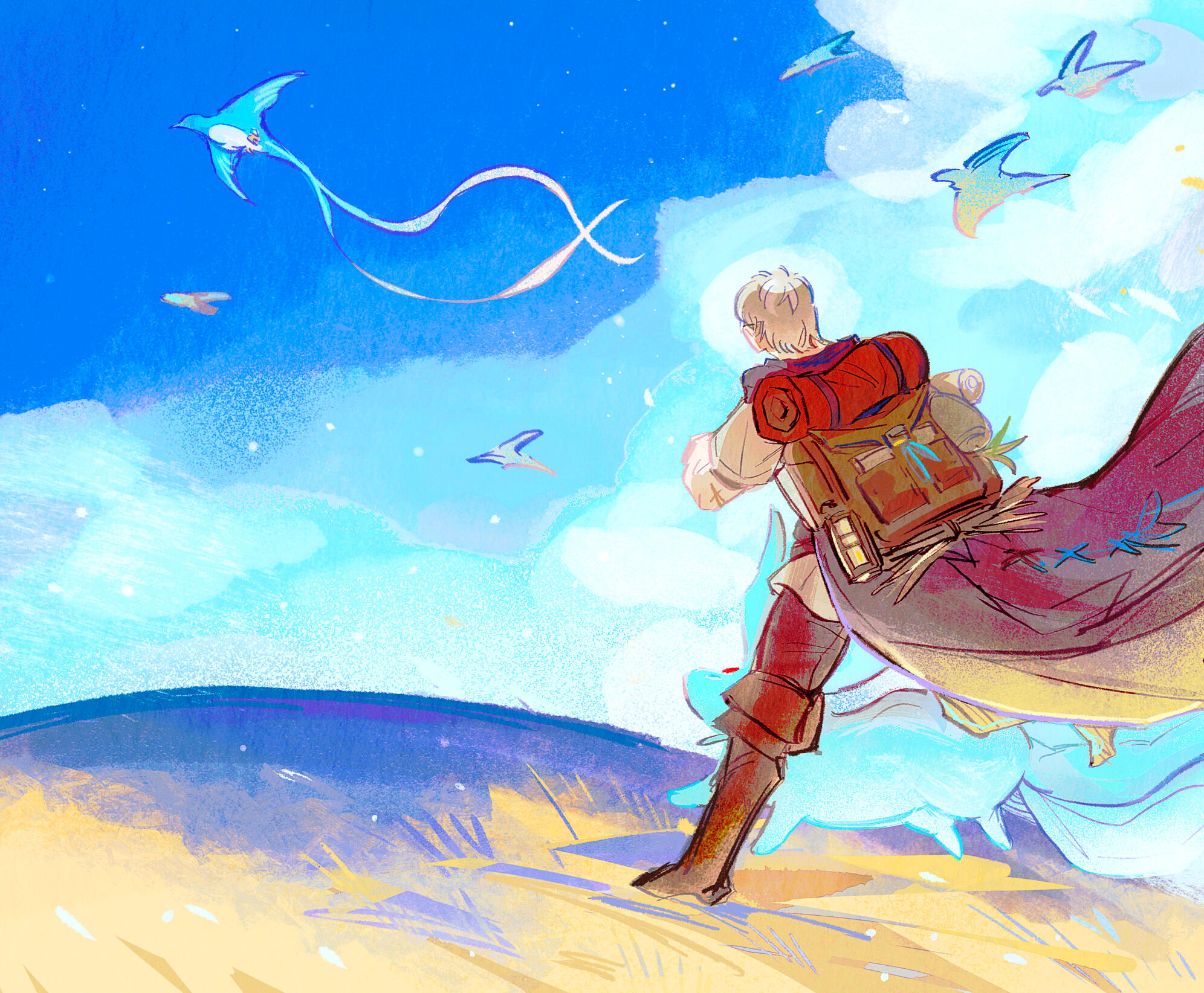 One hop across-One more step across the river-His footsteps stuttered at the river’s bank, his breath hitching. Blue eyes stared at the devastation of his village, the debris still smoking from the mechanical men and their machines that had marched across the cloudy hills not a day prior.Cross the river, find your parents at home-No, that way lies danger!How can home be dangerous?He steps into the river bank. The water is cloudy now, littered with the leftovers of the carnage of his village and its remains.“Hey! There’s a kid over there!”“Get him, don’t let him go back to the village, the Garleans are still there!”Rough arms (not his father’s, not his mother’s) wrapped around his tiny body and lifted him off the water. He cries, beating his fists against the stranger’s back- he needs to go back, he needs to cross the river to see if his father and mother were-They carried him away from the river, away from his village, to the sea, a nearby port. His cries had slowed down, his breathing evened out.They put him on the boat headed west without asking. They were going to cross the wide, vast unknown, they told him. It was packed full of other people- women, children his age, the elderly, all huddled together in the tight space. The silence and the occasional cry or sniffle assailed him as he crouched in his own corner, far away from everyone.Mother. Father.His hands scratched across the wooden boards, splinters caught in his dirty nails. With anger, he scrubbed at his cheeks, rubbing at the tears that fell.Don’t cry, his grandfather’s stern words echoed in his ears, crying is unseemly of the village heir.It didn’t matter now. The tears fell, thick and fast, silent and deadly. In shame, he buried his head into his knees.Above him, the sea wind blew- the scent of sorrow lingering in the breeze. An echo of the dead and the past that had just so recently been his present.